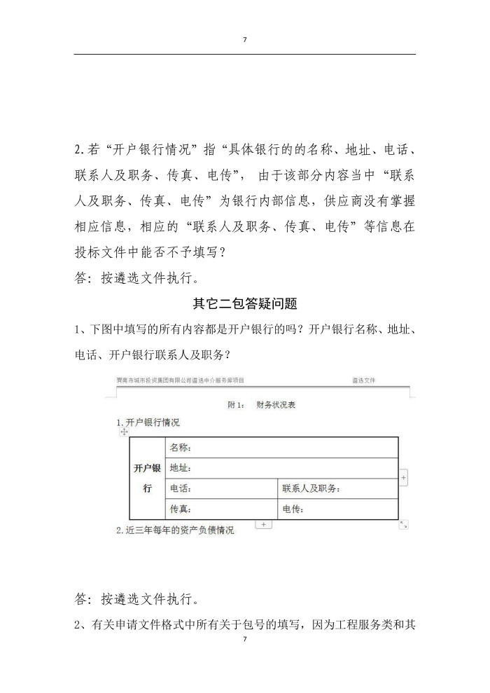 市城投集團中介服務庫遴選答疑澄清公告